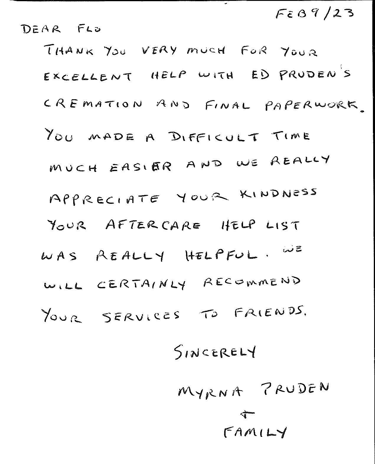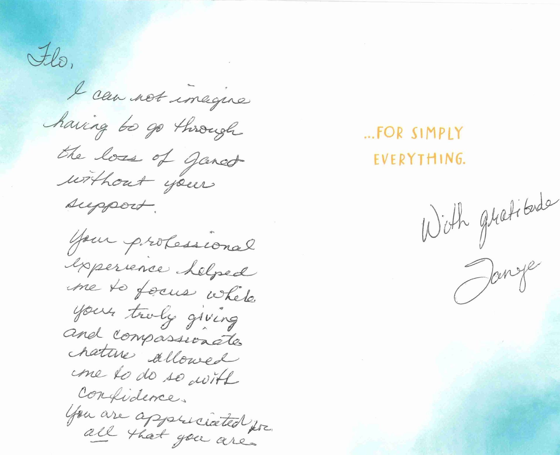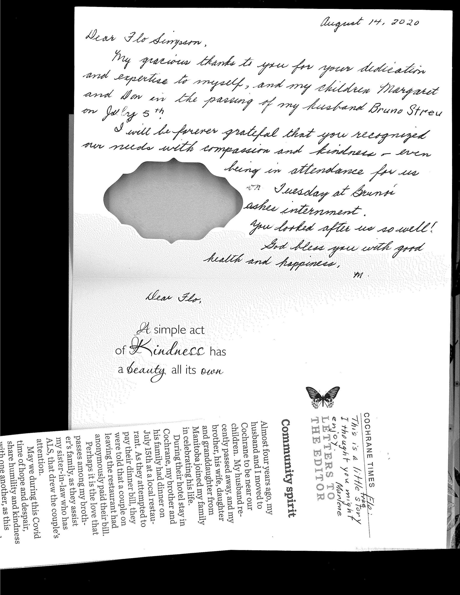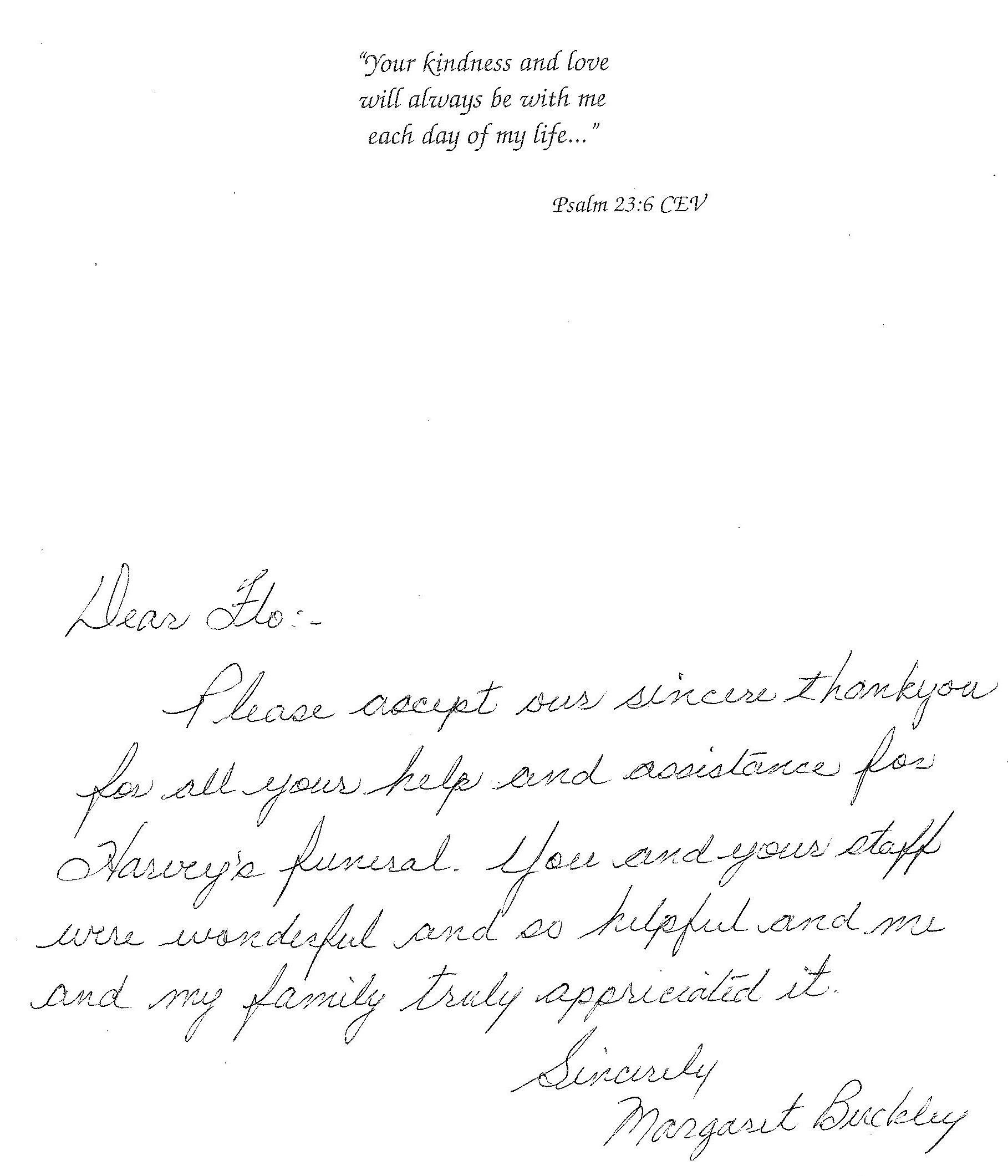It is our greatest pleasure to hear from families we've served after the service is over. We receive many letters, cards and emails thanking us for our care and attention during their time of need and those words warm our hearts and affirm that we are truly here to serve.