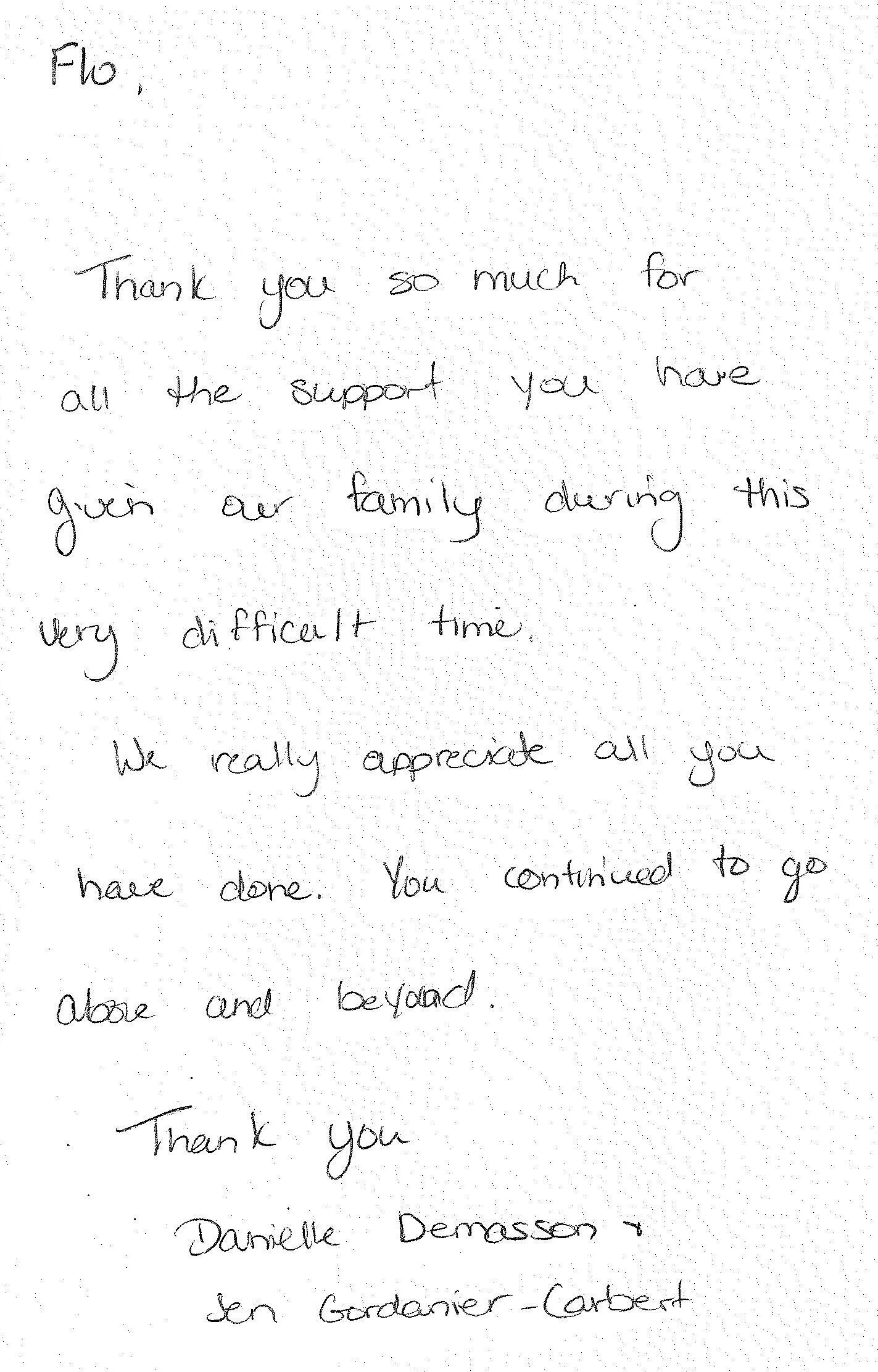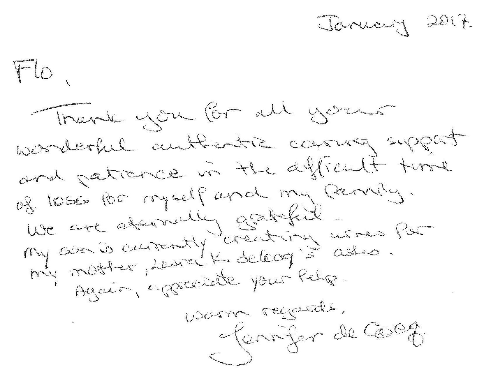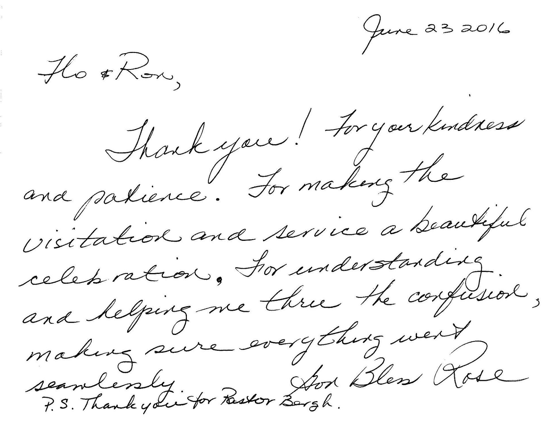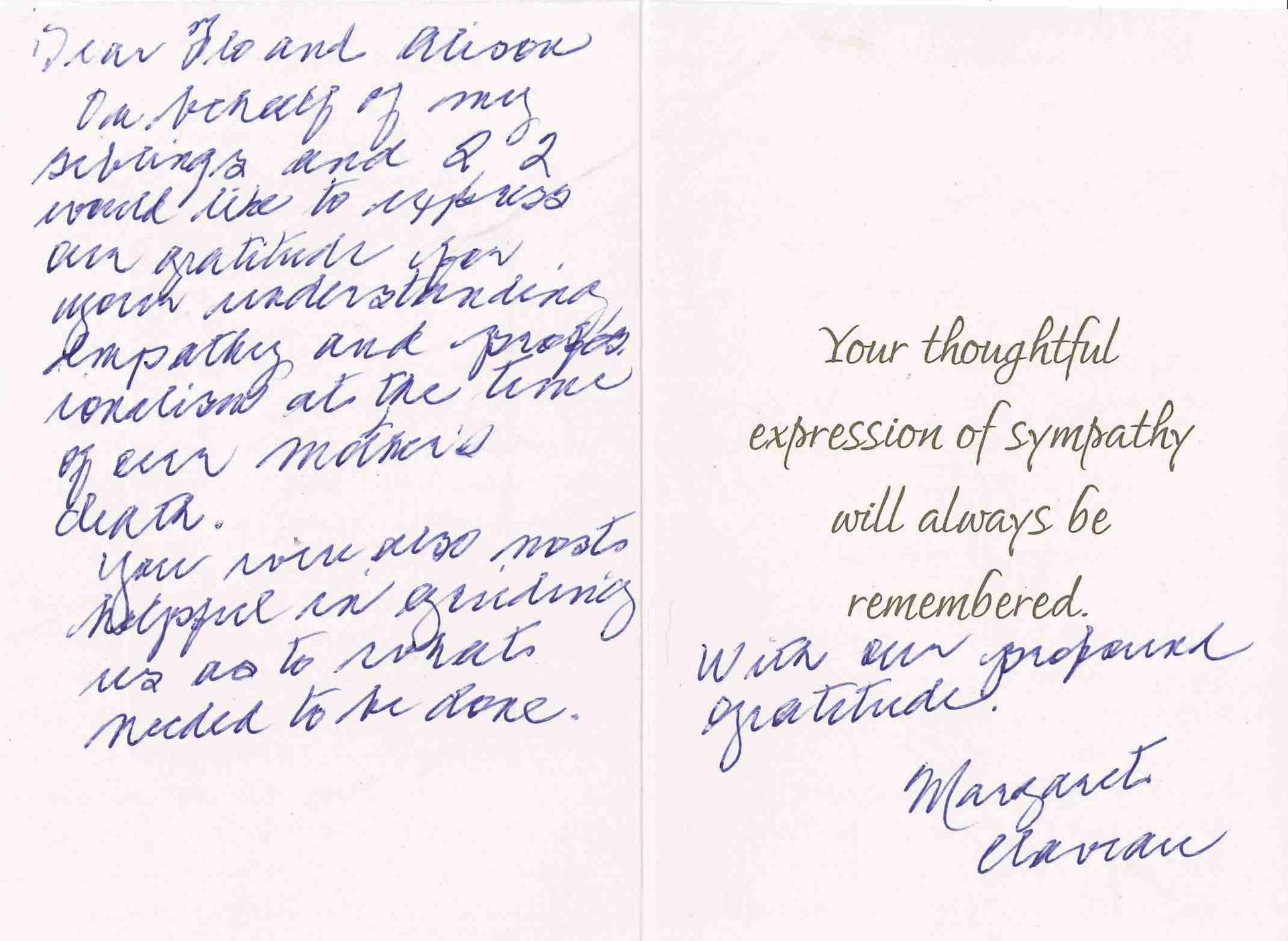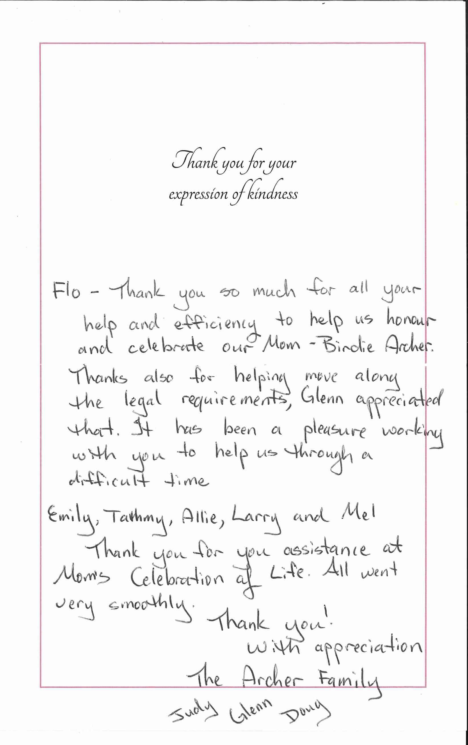 It is our greatest pleasure to hear from families we've served after the service is over. We receive many letters, cards and emails thanking us for our care and attention during their time of need and those words warm our hearts and affirm that we are truly here to serve.